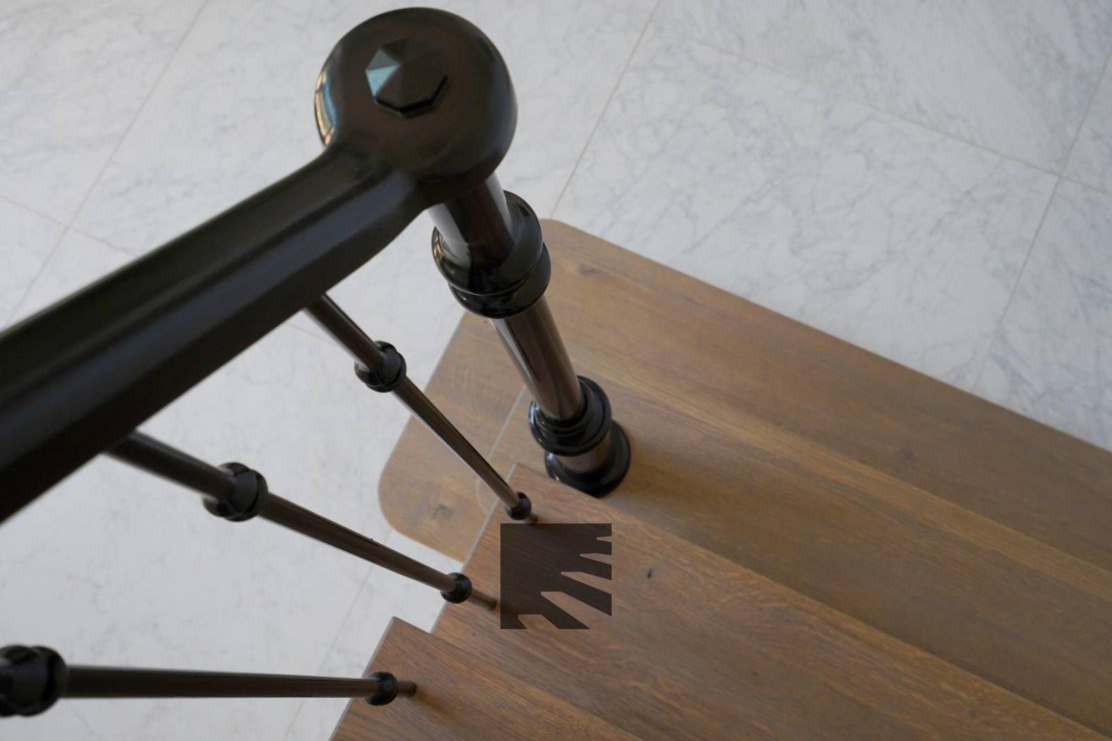 Charmante vloer, prachtige muurlambrisering, fijne meubels, mooie spiegel, tja dan pas is de trap op z'n best!